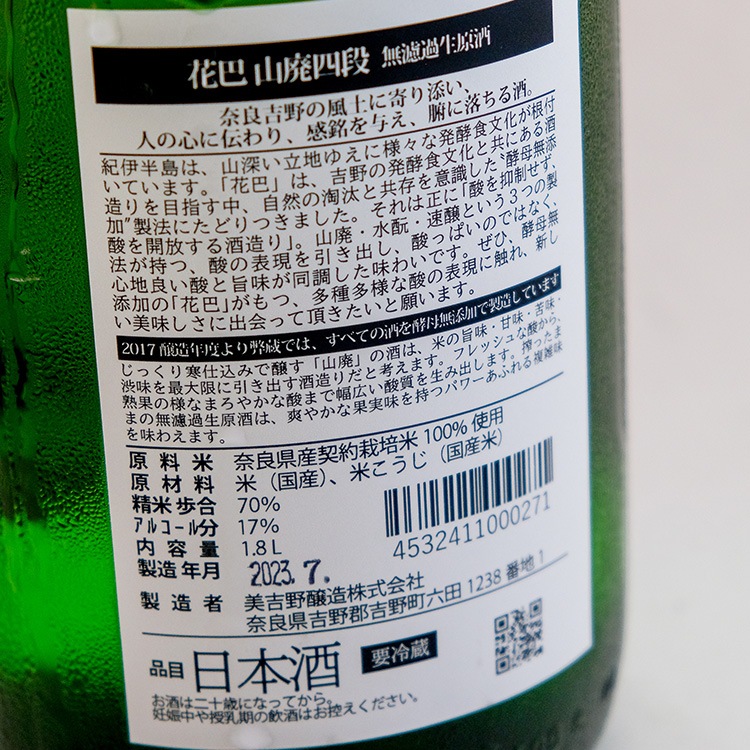 花巴 山廃四段 うすにごり生酒 1800ml ※今季で終売になります