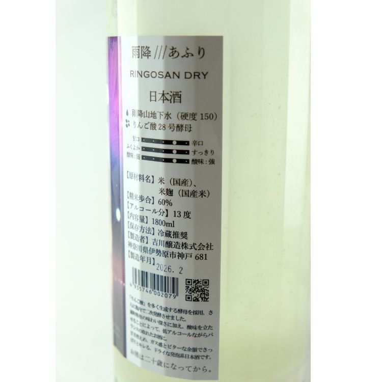雨降 りんごさんドライ 純米 1800ml