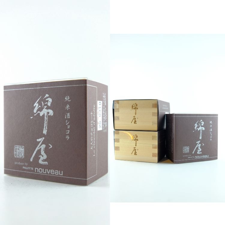 綿屋 純米酒ショコラ 一合檜升4粒入り ※賞味期限 26年3月10日まで ※日本酒と同梱可能商品