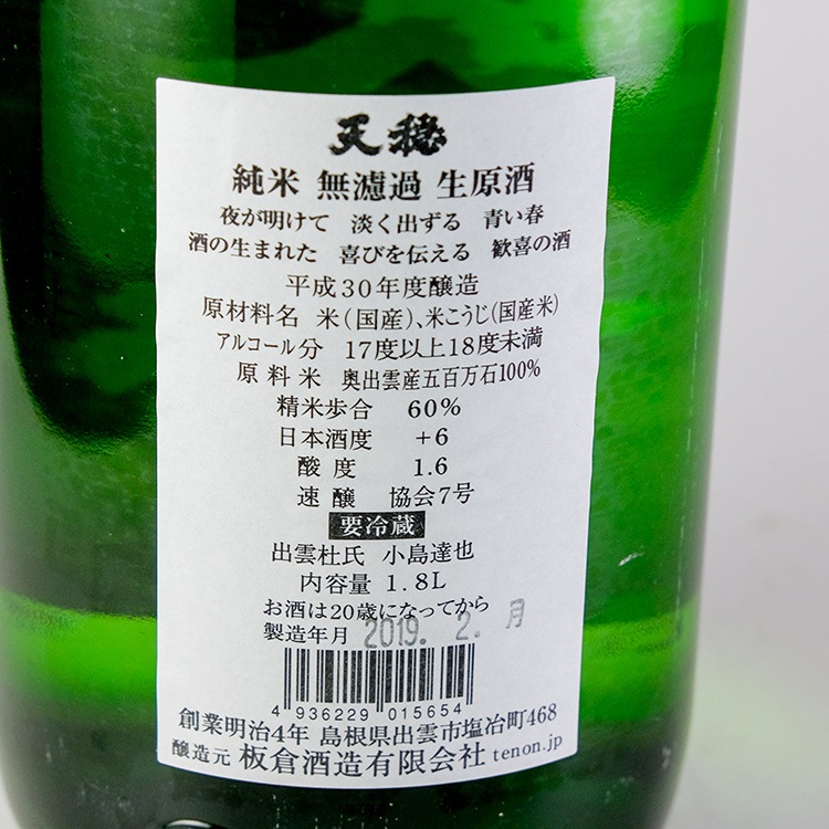 天穏 純米 無濾過生原酒 1800ml