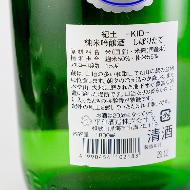 紀土-KID- 純米吟醸しぼりたて 1800ml