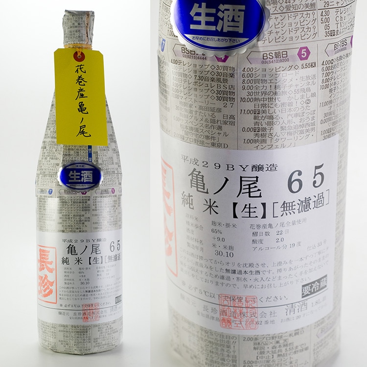 長珍 亀の尾65 純米無濾過生酒 1800ml